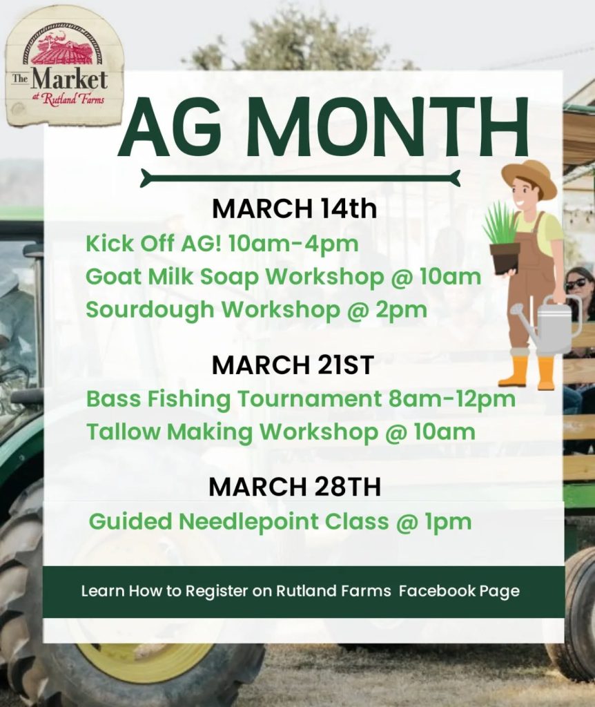 We will be hosting several AG related workshops throughout the month. Check Out what workshops will be available and on what weekends below.